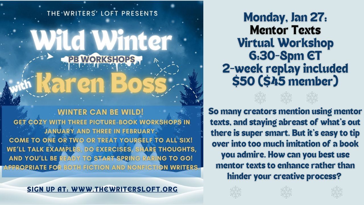Join Anna March 16th, 7pm ET, virtually at the Writers' Loft to discuss how to make your picture book stand out from the slush pile.Â